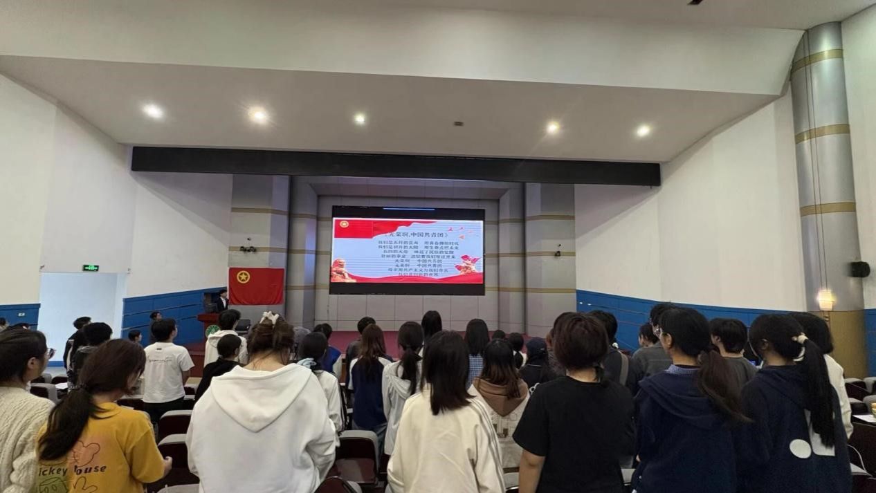艺术与传媒学院五个班级共一百四十余名同学到场参与,同学们紧扣“铭记历史,砥砺前行”的主题,以PPT、视频等形式精彩演绎,阐述了铭记历史的重要性,缅怀抗战英烈,弘扬传承伟大抗战精神,学习习近平总书记九三阅兵重要讲话精神等。最后以入团誓词结尾,积极引导同学铭记初心,砥砺前行,用实际行动践行使命。共青团员在看历史片段时的感慨与感动,回望英雄事迹时的敬佩,对传承红色精神的坚定,宣誓入团誓词的洪亮声音,都无不显示出“不忘历史,牢记使命”的决心,更映射出中华儿女的爱国情怀。