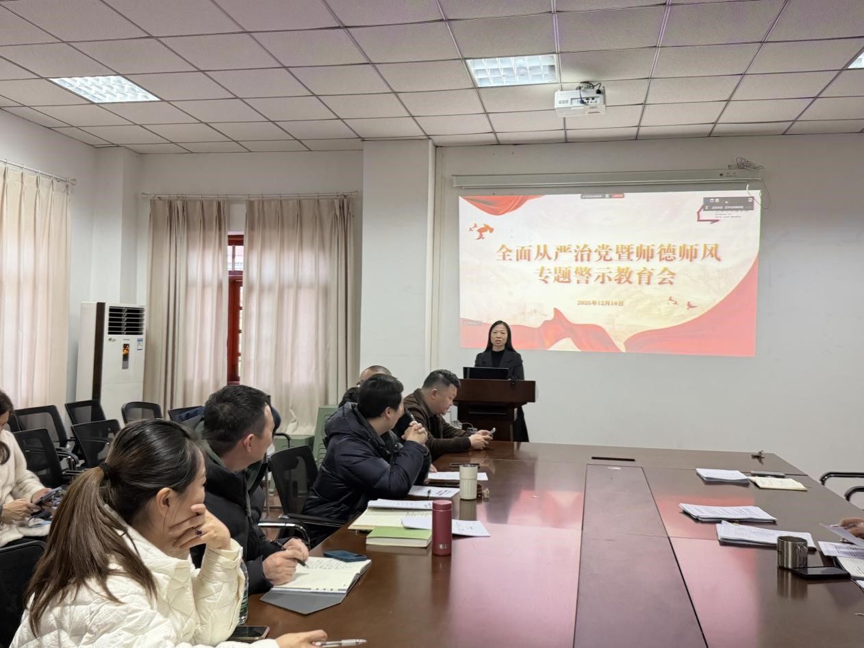 会上,通过观看师德师风警示教育片,以案说法、以案明纪,警示全体教职工要知敬畏、存戒惧、守底线,时刻自重、自省、自警、自励,自觉维护教师职业形象,恪守师德规范。