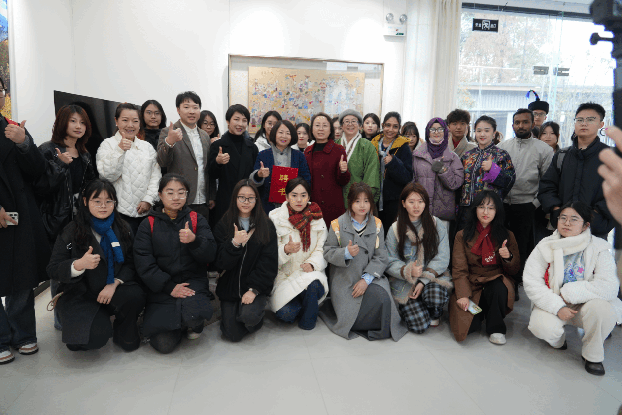 为深化产教融合,培养兼具创新能力与实践素养的高素质人才,2025年12月24日,四川农业大学艺术与传媒学院在成都市郫都区安靖蜀绣公园孟德芝大师工作室隆重举行产业教授聘任仪式,正式聘任中国工艺美术大师、国家级代表性传承人孟德芝为我院产业教授。艺术与传媒学院院长张丽君教授、视觉传达设计系主任陈坤副教授、共生设计研究室负责人宋畅副教授出席,受聘产业教授孟德芝大师及靖绣缘蜀绣有限责任公司代表共同参加,郫都区安靖街道文化站杨敏站长应邀出席并见证仪式。仪式由共生设计研究室负责人宋畅副教授主持。