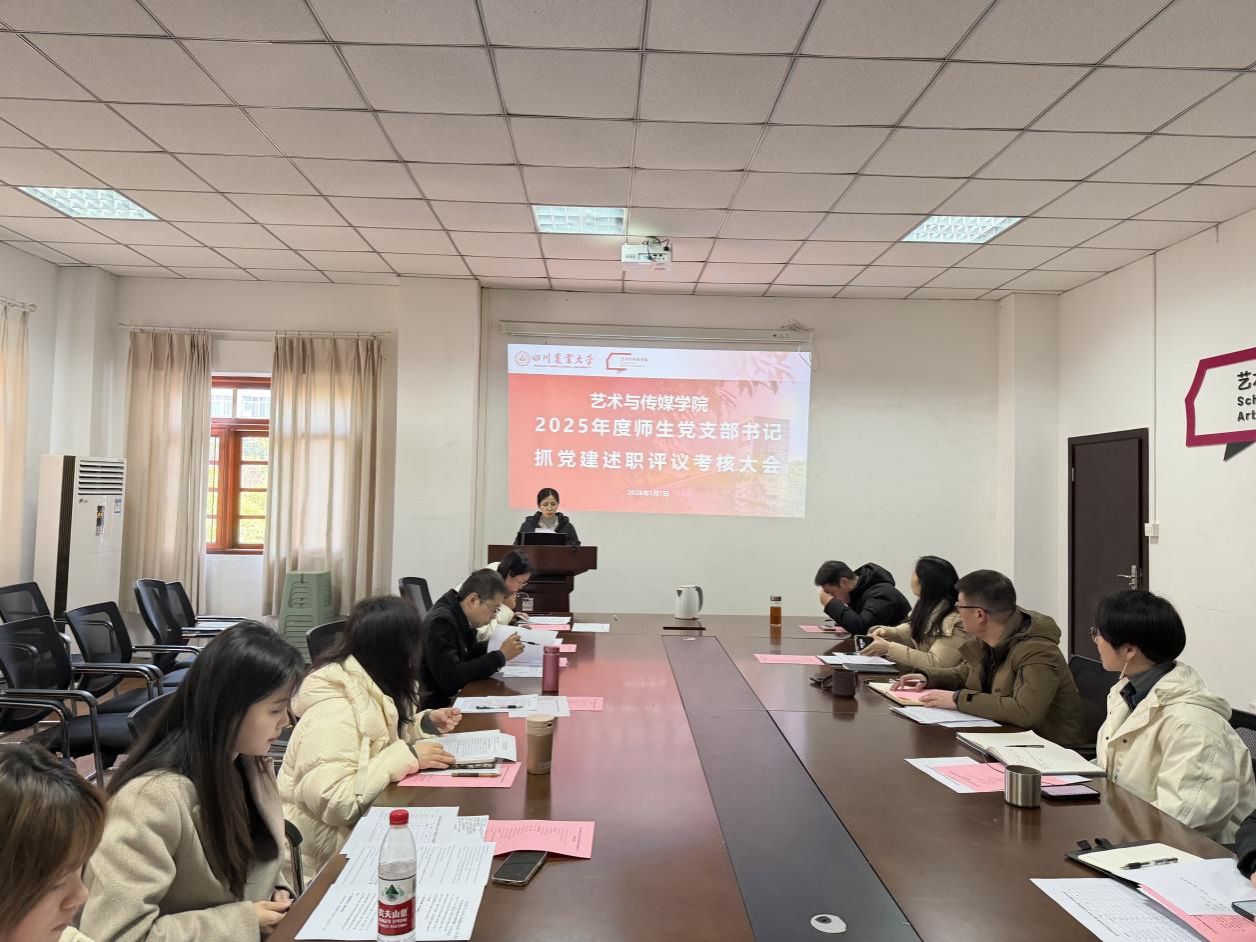 会上,学院9个党支部书记依次登台述职,紧扣"第一责任人"职责,围绕政治建设、思想建设、组织建设、作风建设、纪律建设等核心内容,结合支部工作实际,用详实的数据和具体的案例,系统总结了2025年度抓党建工作的成效亮点。特别是在推动"艺术+党建"融合发展方面,各支部书记重点汇报了特色工作:两个教工支部依托专业优势,将“非遗传承”融入教学活动,实现思政教育与专业教学同频共振;学生支部以专业考察、社会实践、志愿服务为载体,组织党员深入乡村开展文创设计、文化墙绘制等志愿服务,在服务乡村振兴中践行初心使命。