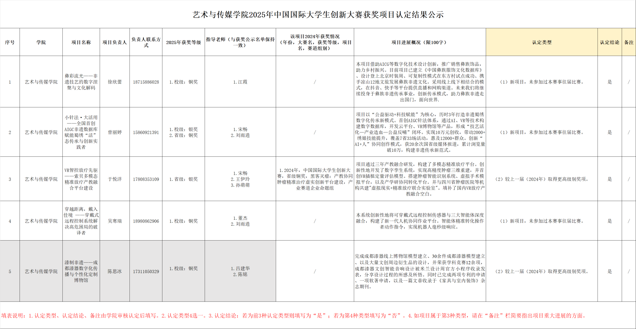 艺术与传媒学院2025年中国国际大学生创新大赛获奖项目认定结果公示
