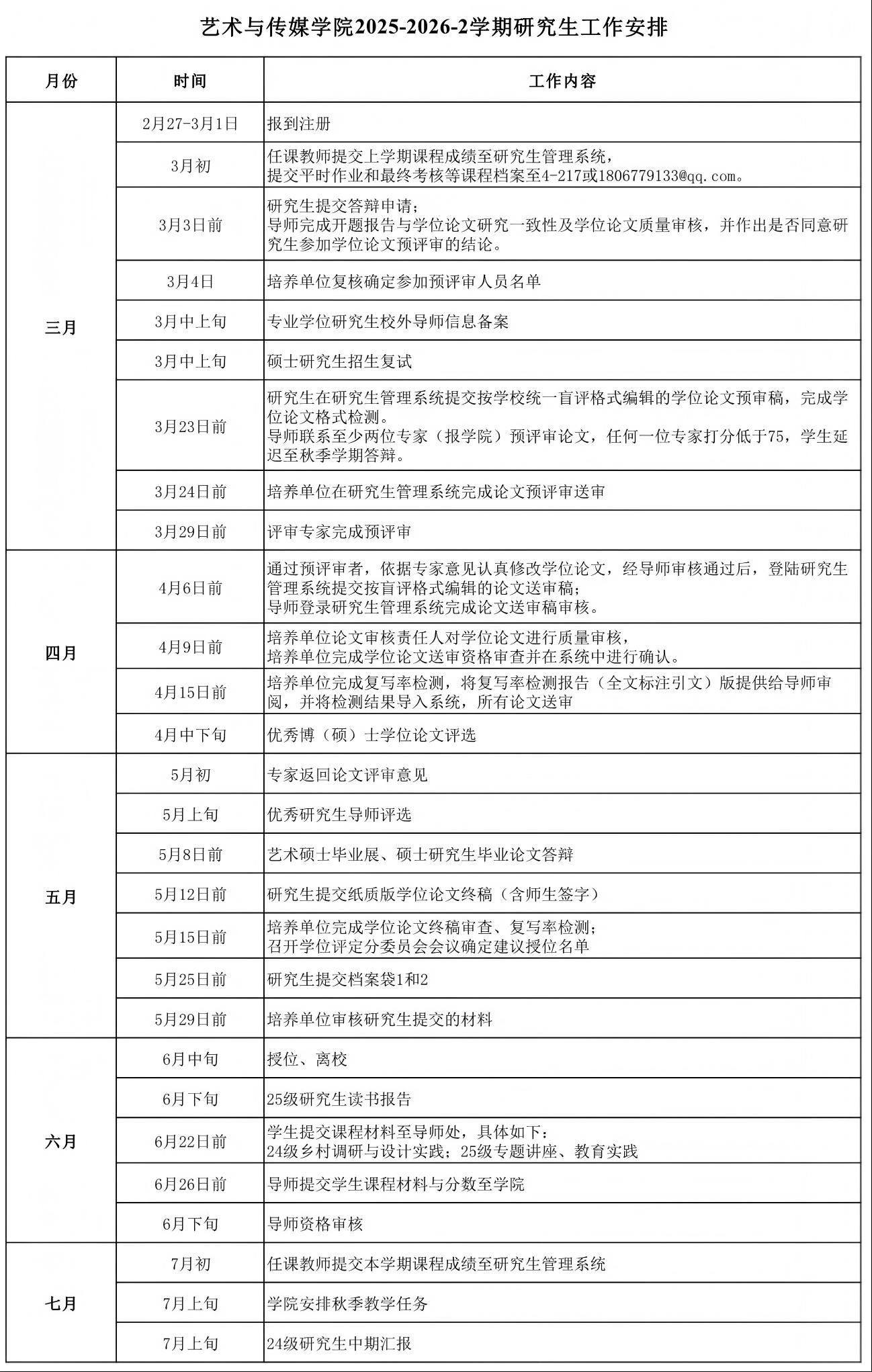 艺术与传媒学院2025-2026-2学期研究生工作安排